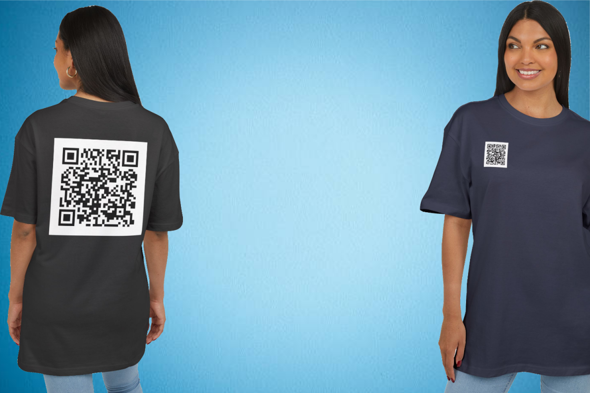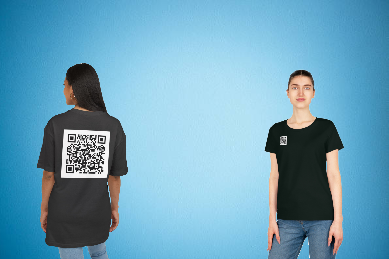 Gestalte T-Shirts und Hoodies mit einem QR-Code, der auf dein Bild oder Video verweist. Der Clou? Du kannst den Inhalt jederzeit ändern, der Code bleibt gleich! Dein Style, deine Message – immer aktuell. 🚀